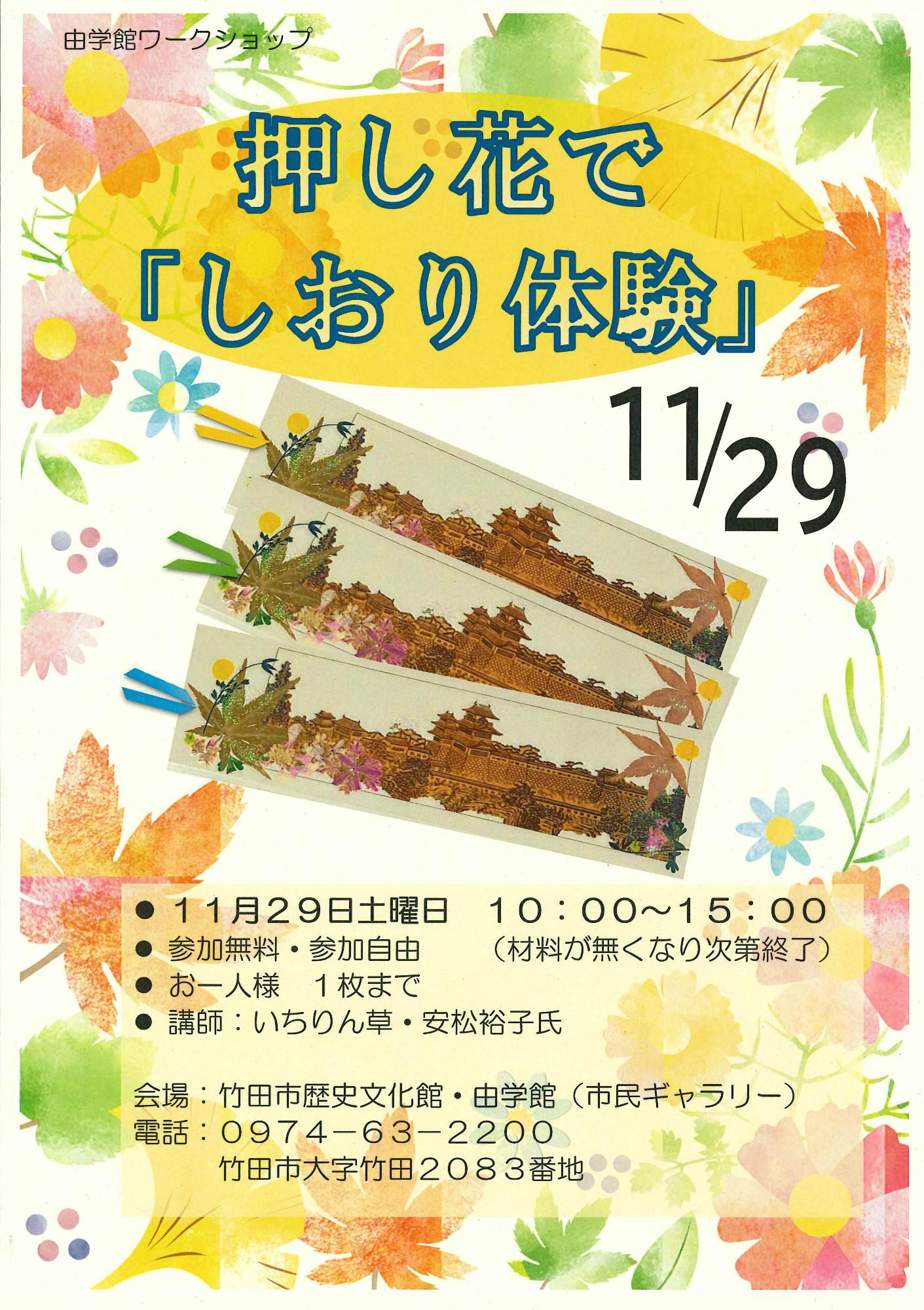 由学館ワークショップ「押し花で『岡城しおり体験』」