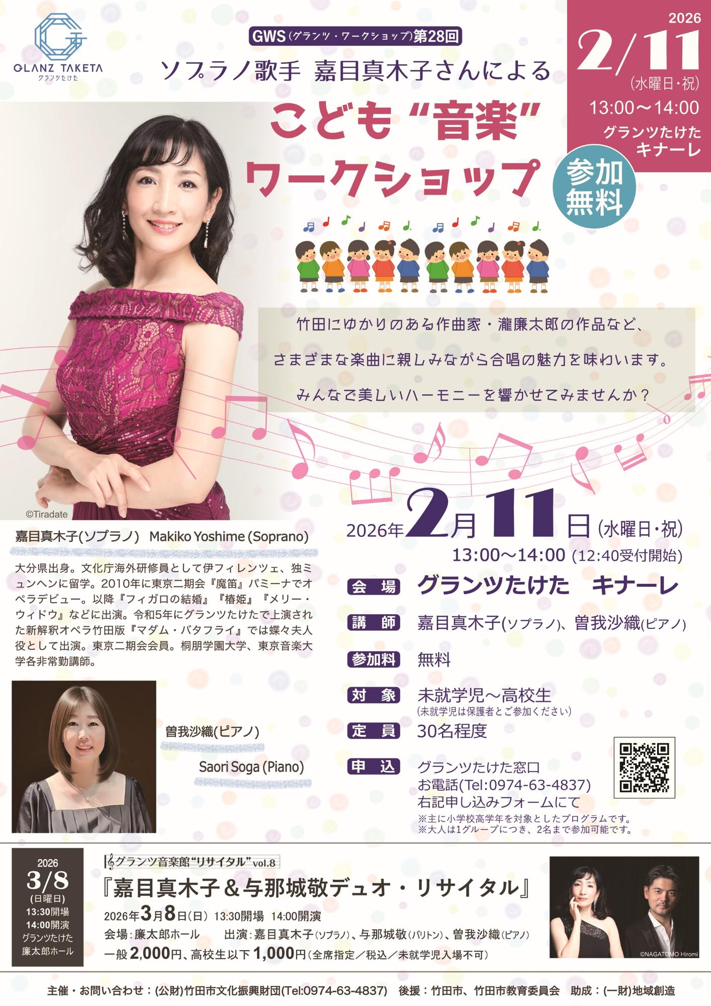 竹田にゆかりのある作曲家とその素晴らしい作品たちに親しみ、参加者全員で奏でるハーモニーを味わってみませんか?