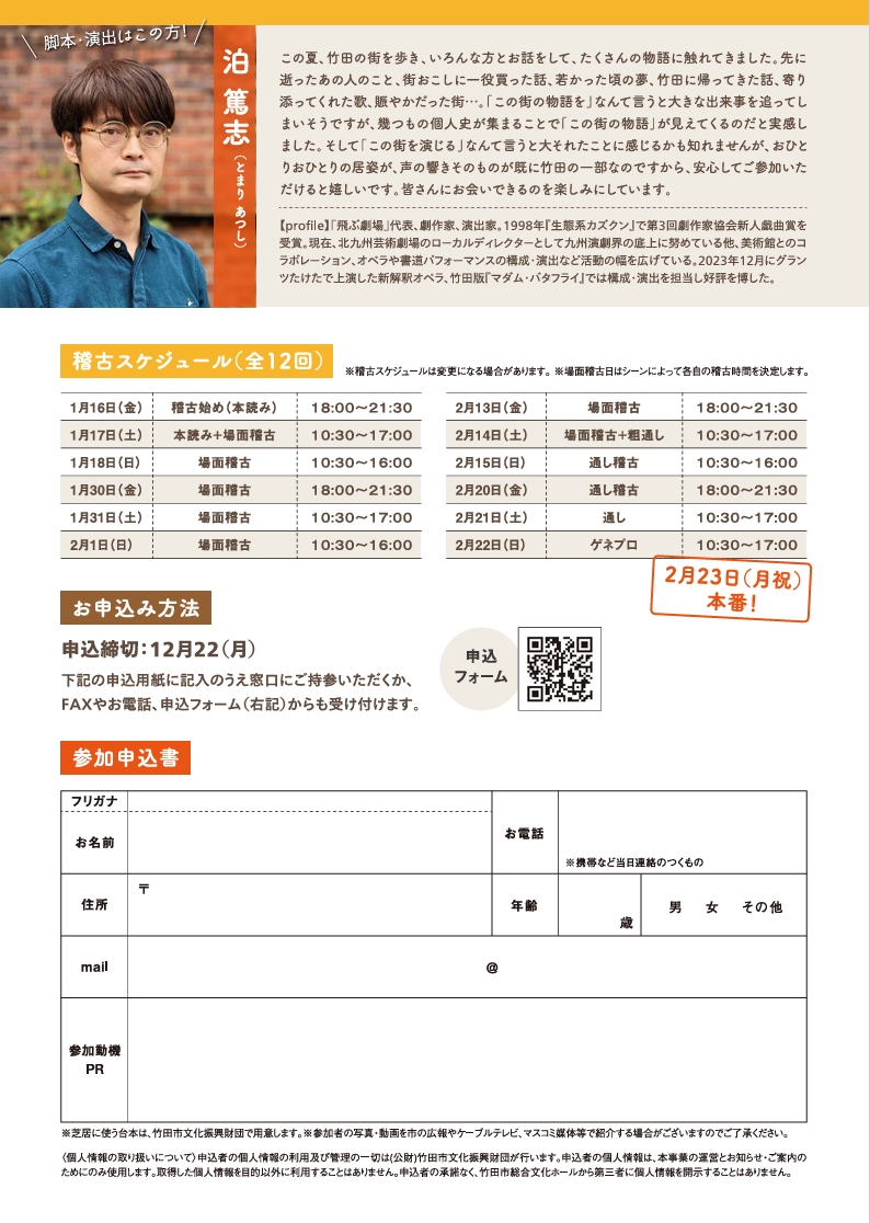 グランツたけたが新たに取り組む市民創作劇の出演者を大募集!