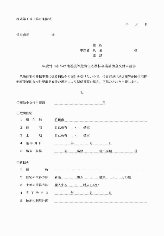 ○竹田市がけ地近接等危険住宅移転事業補助金交付要綱