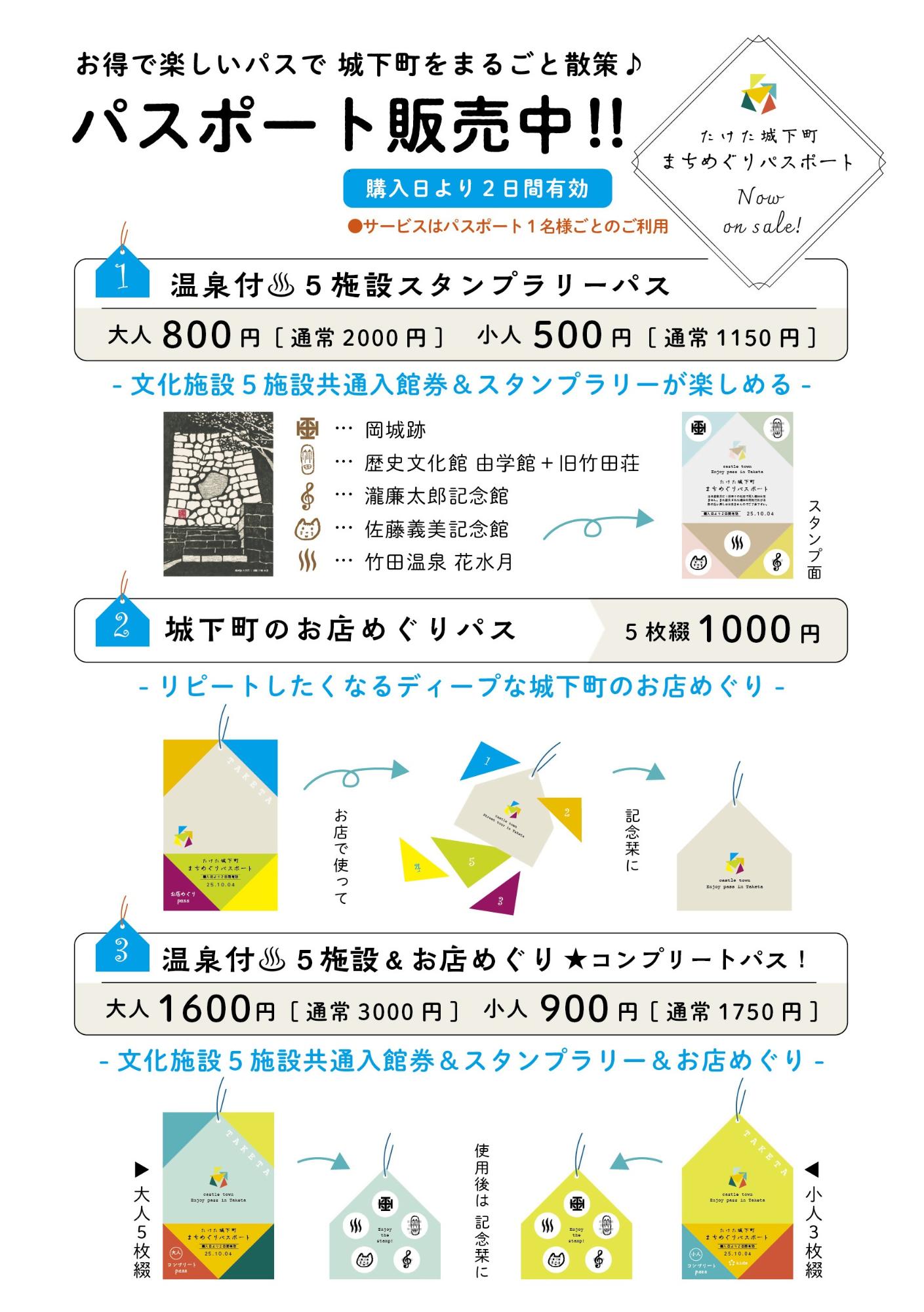 令和7年10月4日から『たけた城下町まちめぐりパスポート』の販売を開始します。